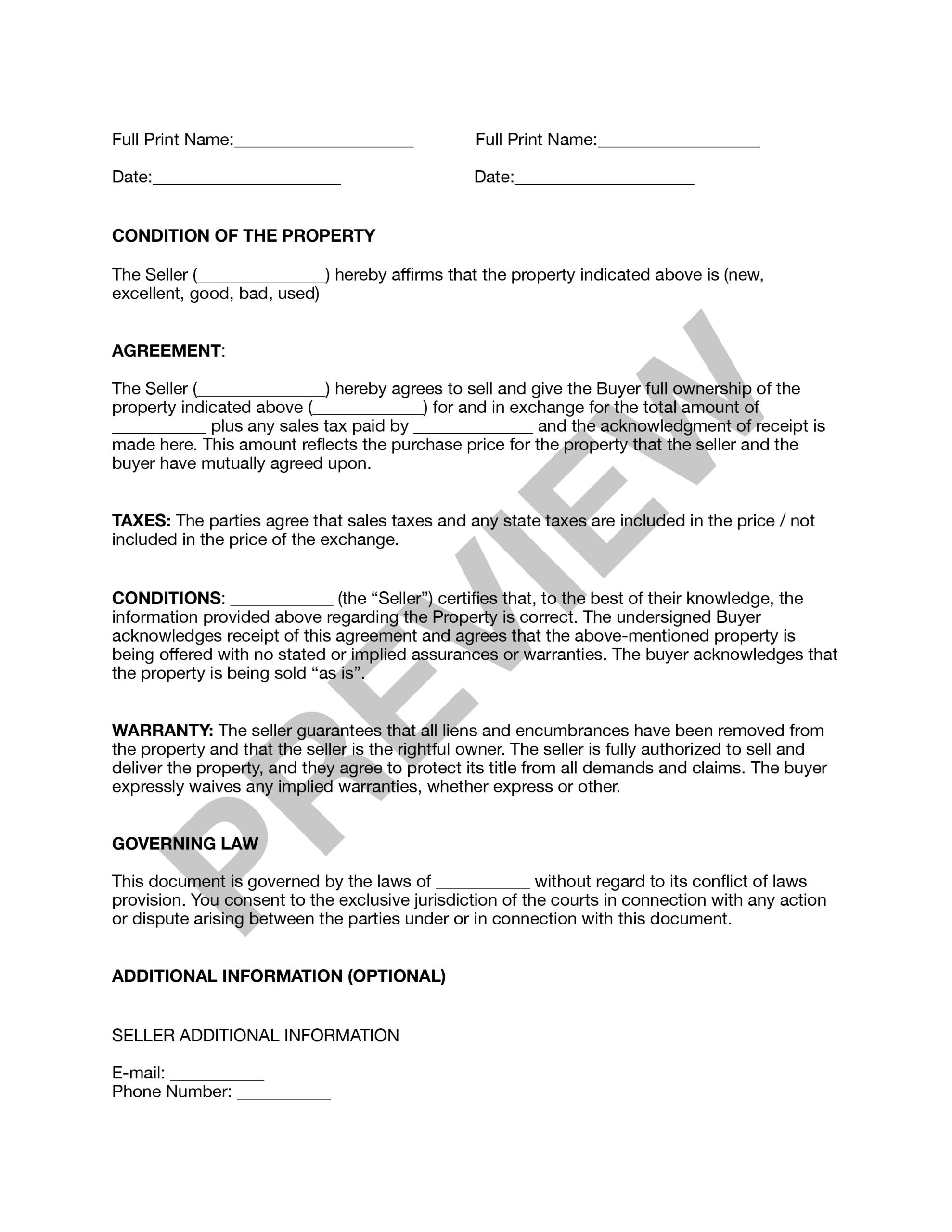 If there are any conditions to the sale, such as the buyer having to acquire funding, state them on the proof of sale.